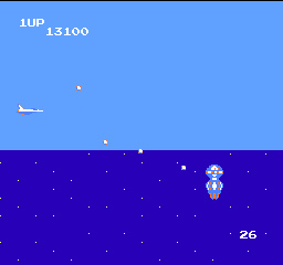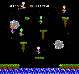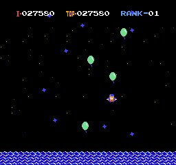 BALLON FIGHT,當時還算是我比較常玩之一。游戲似乎沒有故事,目的就是操縱汽球人將對手汽球打破後踢打對方。操作與平常動作遊戲不一樣,關卡也不多。因為是汽球,汽球破掉聲音快感十足,不然就是掉到或接近水面被魚吃下。適合雙人的遊戲之一。