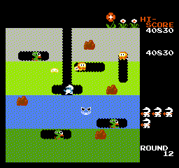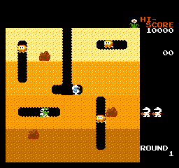 DIG DUG是一款有意思的動作遊戲。主角的任務是將地底怪物消滅,消滅方式是把敵人吹爆(鬼畜!)。而且在挖掘時還要小心不要被石頭壓死,但後期因為敵人速度變快反而需要利用石頭來壓死敵人,可以說是主題鮮明的遊戲。遊戲高達100關,但可惜變化不大,玩到一段時間就會膩了。