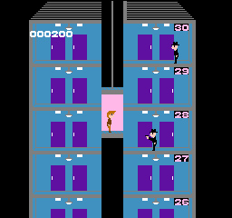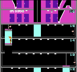 ELEVATOR ACTION,帶有一點益智成份的動作遊戲。主角是一名間諜OTTO在一棟建築物內以電梯移動,清除敵人並收集秘密文件。在電梯中以上下來移動,一般按下來蹲,下樓梯跟開紅門拿取秘密文件。蹲下後需要按上來站立。電梯上下移動時需要注意敵人連發子彈,有時很難躲開。全部共四面,就是一部有大量電梯的動作遊戲! 小裏技。