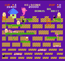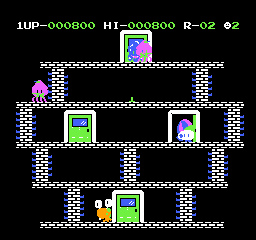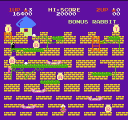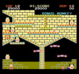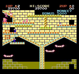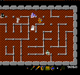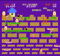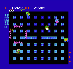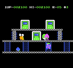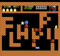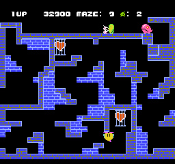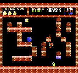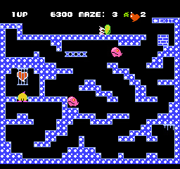 CHACK'N POP,半益智半動作的遊戲。主人公CHACK為了救出女友在迷宮中一邊用炸彈(A與B代表左跟右方的炸彈,有時需挑高丟炸彈)消除敵人一邊解救被鎖著的愛心往深處前進。難度中等,尤其是最後一關難度增加(需要考量不要破壞太多的牆壁),雖有時間限制但還是算可接受範圍。遊戲共有9關,之後也是一直重玩。