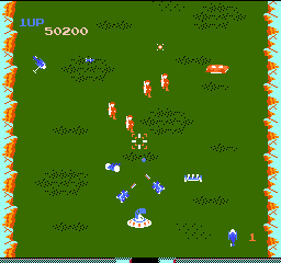 RAID ON BUNGELING BAY,紅白機第一款直昇機射擊游戲。玩家的直昇機AH-16奉命攻擊BUNGELING帝國的陸上設備跟戰艦,失敗的話BUNGELING帝國將會攻擊地球。操縱不易(算是第一款有特殊操縱系統的遊戲),游戲目的是摧毀所有工廠(紅色)。D直昇機受傷害值,B是炸彈數,F是工廠數。當炸彈丟完後要回去補給,補給是在航母上速度很低時按A。玩家同時還要保護航母不受敵戰鬥機攻擊。此遊戲也是沒有結局,不過一回合游戲時間算很長了。製造者後來以SIM CITY而出名。