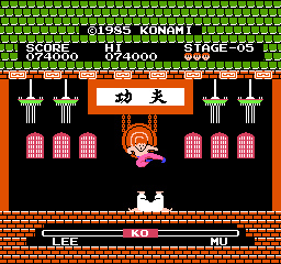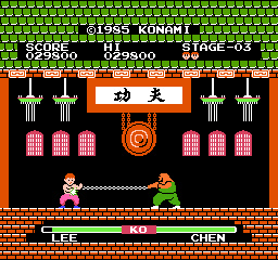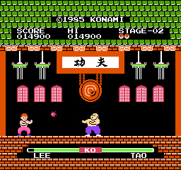YIE AR KUNF FU是格鬥對戰遊戲。在中國,主角烏龍與五位對手一一格鬥。雖然離現在我們認知的格鬥對戰遊戲還有一段距離,但已經有點雛形。裡面角色鮮明,且變化多也算是一款有趣的遊戲。最近因KUSO音樂版的出現而更有名。PS: 街機板可說是真正的格鬥遊戲,而且敵人也較多。